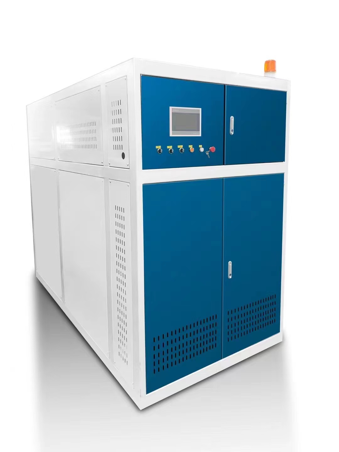 直流蒸汽发生器特点 1、先进的全自动智能控制系统: 公司自主研发高端智能触屏控制系统,经过长期理论探索与系统实践,推出一套科学的系统信号防误判逻辑,通过各种检查设备的指标变化能快速判断设备运行状态及时调整维护设备正常运行。运用工业全自动控制程序系统,精准供水、供气模式。提高设备的智能化运用水平,设备完全可以做到免人工值守、全自动智能化运行,节省企业人工成本和维护成本。 2、蒸汽发生器直流技术运用: 传统的蒸汽产生方式的过程是对储水设备里的水进行加热后产生蒸汽,而远大直流蒸汽发生器是运用自主知识产权的直流蒸发技术使水流经热交换器后瞬间汽化变成高温高压的高品质蒸汽,蒸汽产生的时间仅需1分钟,蒸汽发生速度快,大大降低热量的损耗节省能源。 3、变频控制蒸汽技术: 变频的原理:在很长一段时期内,锅炉设备的出汽量都维持在一个固定的状态,变频技术的应用,可使蒸汽发生器设备能够按照用汽量的大小进行自动调节,使蒸汽发生器设备真正做到按需分配、精准到位,从而达到节能的目的。 4、低氮燃烧技术: 传统的锅炉氮氧化物超标的重要原因是空气中的氮气是一种惰性气体,在高温的环境下容易和空气中的氧气反应形成氮氧化合物,而远大直流蒸汽发生器是采用常态低温燃烧技术,该技术大大减低氮氧化物的排放,NOx的排放低于30毫克。 5、非压力容器设计,无需使用办证: 远大直流蒸汽发生器是没有容水内胆,整个设备内的热交换管路的容水量约10升,远远低于30升标准,无爆炸风险没有安全隐患。 6、模块化设计综合节能率高达30%以上: 远大蒸汽发生器采用模块化设计,定型蒸发量设计为0.3吨、0.5吨、0.7吨、1.0吨、1.5吨、2.0吨可采用模块式配置,设计紧凑占地面积小,远、近距离分布式安装可大大节省蒸汽管道传输的热量损失和管道投资维护成本。综合节能率高达30%以上。 直流蒸汽发生器产品特性 1、安全可靠: 设备使用锅炉专用无缝钢管,采用直流式结构,超温超压缺水保护,水容积小,低于30升标准,无爆炸风险安全可靠,无需办证年审。 2、技术领先: 公司是定点锅炉压力容器制造企业,具有完整质量体系,专注蒸汽技术的研发,不断进行产品智能优化升级,引领蒸汽行业。 3、高效节能: 直流式结构结合独有烟气回收翅片式冷凝器,热效率高达97.8%,蒸汽品质好。 4、优质环保: 直流式结构配翅片贯流式烟气回收转换器,采用低氮燃烧技术不仅热效率高且烟气排放指标满足相关排放标准,氮氧化物低于30毫克。 5、产气迅速: 从冷水启动到提供额定蒸汽只需要1分钟,大大降低启动热损失。 6、变频智能控制: 配有一键启停全智能触屏操作,运用工业全自动控制程序系统,精准供水、供气模式。各项保护功能齐全,只需接通水、电、气即可调试使用。 7、模块化设计: 模块式配置用户可根据用气情况就近安装,分布式使用,减少长距离管道热损耗。 8、结构紧凑、体积小、移动方便: 独有的设计结构非常紧凑,占地面积小,无需特定锅炉房,安装移动非常方便。